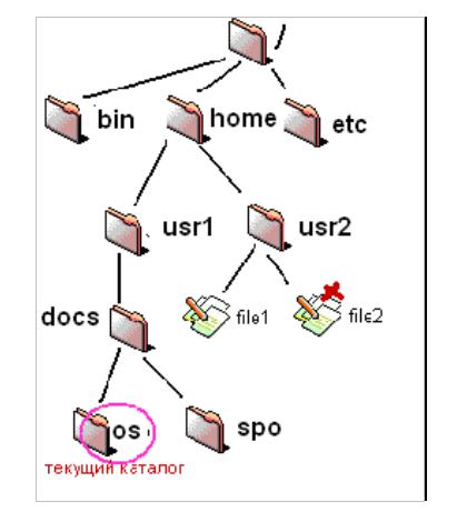 Так, например, для структуры, показанной на следующем рисунке 1.4 доступ к отмеченному на рисунке файлу из текущего каталога возможен