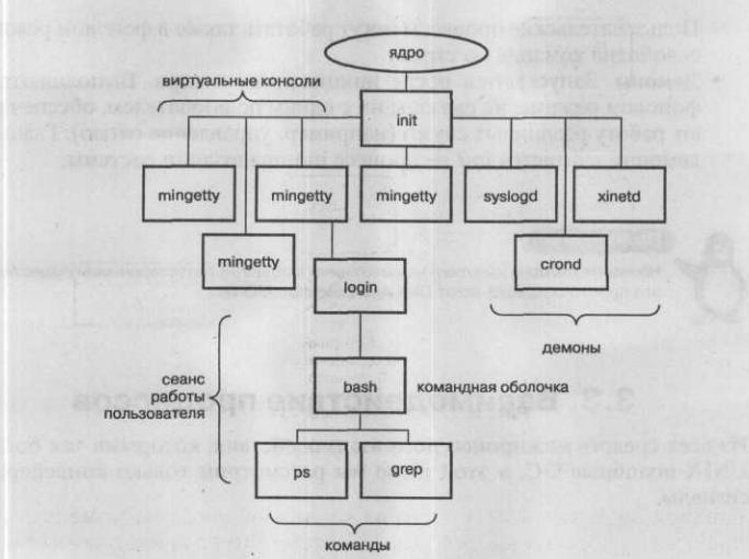 В Linux реализована четкая иерархия процессов в системе. Каждый процесс в системе имеет всего одного родителя и может иметь один или более порожденных процессов.