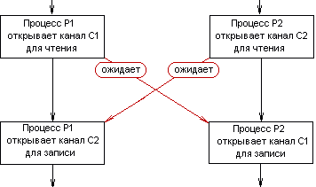 Некоторую сложность при реализации данной модели может представлять синхронизация работы процессов с каналами. При этом следует учитывать следующие обстоятельства: