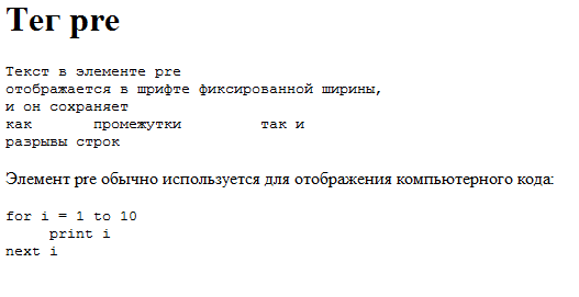 Элемент pre обычно используеться для отображения компьютерного кода: